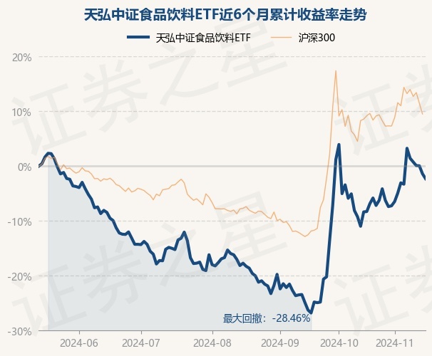 证券之星消息,11月15日,天弘中证食品饮料ETF最新单位净值为0.7487元,累计净值为0.7487元,较前一交易日下跌0.91%。历史数据显示该基金近1个月上涨6.32%,近3个月上涨18.73%,近6个月下跌2.3%,近1年下跌8.65%。该基金近6个月的累计收益率走势如下图: