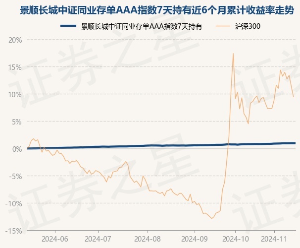 证券之星消息,11月15日,景顺长城中证同业存单AAA指数7天持有最新单位净值为1.0591元,累计净值为1.0591元,较前一交易日上涨0.0%。历史数据显示该基金近1个月上涨0.19%,近3个月上涨0.44%,近6个月上涨0.97%,近1年上涨2.41%。该基金近6个月的累计收益率走势如下图: