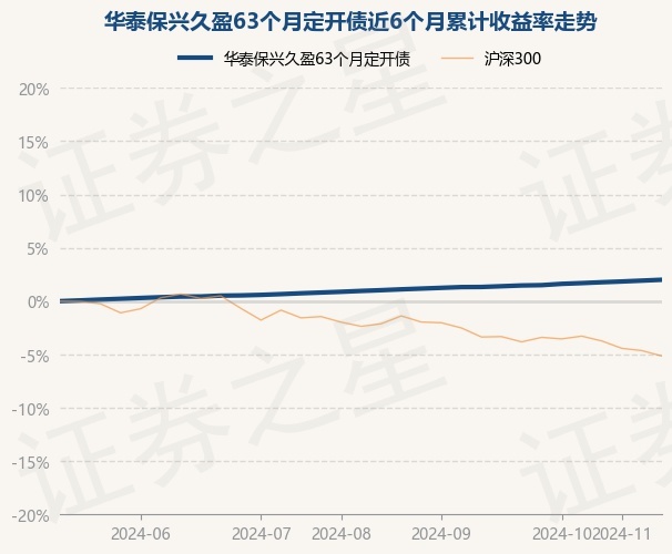 证券之星消息,11月15日,华泰保兴久盈63个月定开债最新单位净值为1.0099元,累计净值为1.1602元,较前一交易日上涨0.08%。历史数据显示该基金近1个月上涨0.38%,近3个月上涨1.04%,近6个月上涨2.0%,近1年上涨3.92%。该基金近6个月的累计收益率走势如下图: