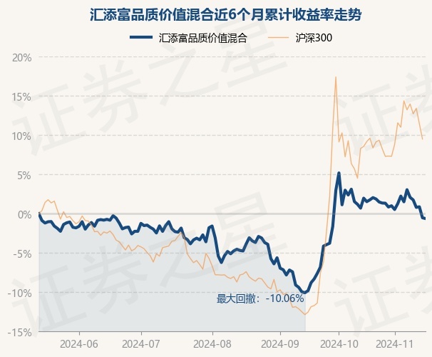 证券之星消息,11月15日,汇添富品质价值混合最新单位净值为1.1222元,累计净值为1.1222元,较前一交易日下跌0.1%。历史数据显示该基金近1个月下跌2.13%,近3个月上涨4.33%,近6个月下跌0.62%,近1年上涨9.18%。该基金近6个月的累计收益率走势如下图: