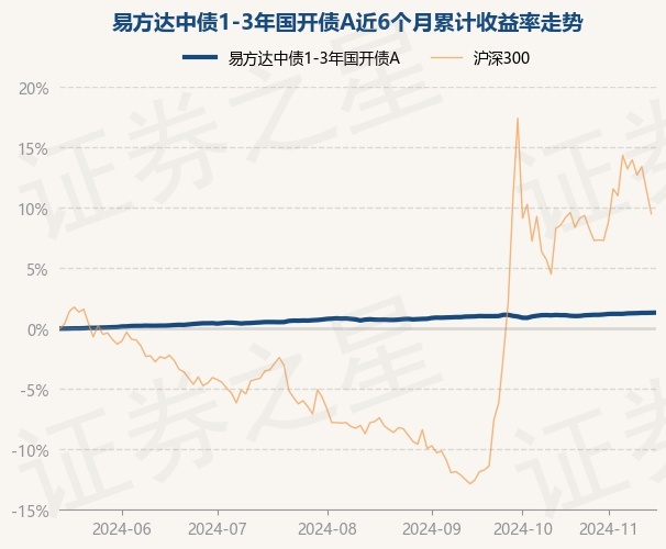 证券之星消息,11月15日,易方达中债1-3年国开债A最新单位净值为1.0095元,累计净值为1.1785元,较前一交易日上涨0.01%。历史数据显示该基金近1个月上涨0.2%,近3个月上涨0.57%,近6个月上涨1.32%,近1年上涨3.5%。该基金近6个月的累计收益率走势如下图: