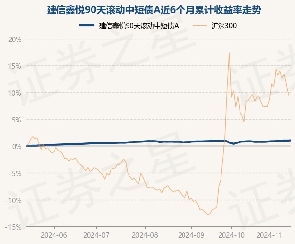 证券之星消息,11月15日,建信鑫悦90天滚动中短债A最新单位净值为1.1131元,累计净值为1.1131元,较前一交易日上涨0.03%。历史数据显示该基金近1个月上涨0.23%,近3个月上涨0.26%,近6个月上涨1.06%,近1年上涨3.04%。该基金近6个月的累计收益率走势如下图: