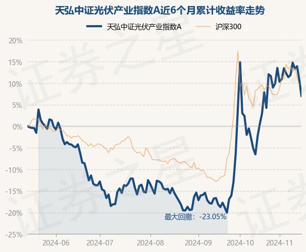 证券之星消息,11月15日,天弘中证光伏产业指数A最新单位净值为0.7238元,累计净值为0.7238元,较前一交易日下跌3.44%。历史数据显示该基金近1个月上涨10.07%,近3个月上涨24.92%,近6个月上涨7.02%,近1年下跌10.37%。该基金近6个月的累计收益率走势如下图: