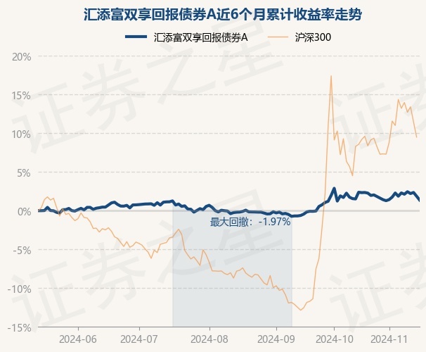 证券之星消息,11月15日,汇添富双享回报债券A最新单位净值为1.034元,累计净值为1.034元,较前一交易日下跌0.49%。历史数据显示该基金近1个月下跌0.37%,近3个月上涨1.55%,近6个月上涨1.37%,近1年上涨5.82%。该基金近6个月的累计收益率走势如下图: