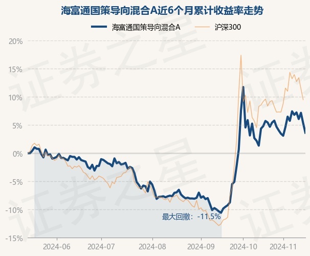 证券之星消息,11月15日,海富通国策导向混合A最新单位净值为1.8418元,累计净值为2.8809元,较前一交易日下跌1.6%。历史数据显示该基金近1个月上涨0.92%,近3个月上涨11.48%,近6个月上涨3.64%,近1年上涨7.21%。该基金近6个月的累计收益率走势如下图: