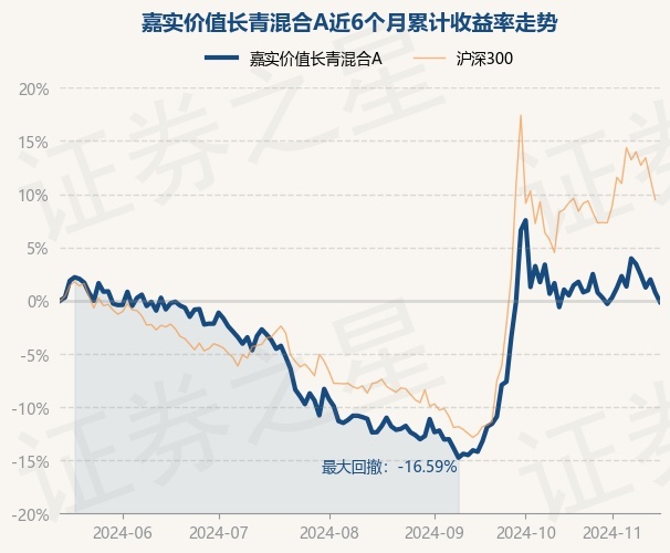 证券之星消息,11月15日,嘉实价值长青混合A最新单位净值为0.8605元,累计净值为0.8605元,较前一交易日下跌0.9%。历史数据显示该基金近1个月下跌0.76%,近3个月上涨13.96%,近6个月下跌0.13%,近1年上涨11.06%。该基金近6个月的累计收益率走势如下图: