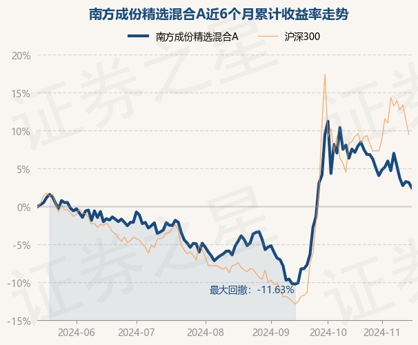 证券之星消息,11月15日,南方成份精选混合A最新单位净值为0.5866元,累计净值为1.9792元,较前一交易日下跌0.66%。历史数据显示该基金近1个月下跌4.7%,近3个月上涨8.11%,近6个月上涨2.48%,近1年下跌1.87%。该基金近6个月的累计收益率走势如下图: