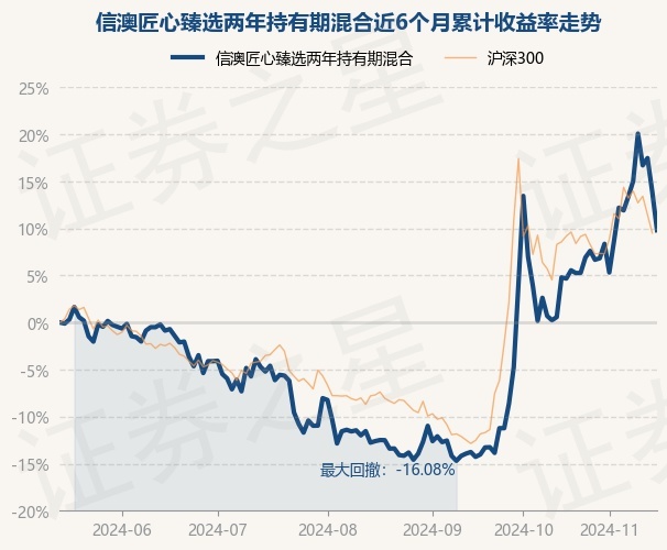 证券之星消息,11月15日,信澳匠心臻选两年持有期混合最新单位净值为0.9668元,累计净值为0.9668元,较前一交易日下跌3.57%。历史数据显示该基金近1个月上涨9.05%,近3个月上涨25.64%,近6个月上涨9.8%,近1年下跌2.04%。该基金近6个月的累计收益率走势如下图: