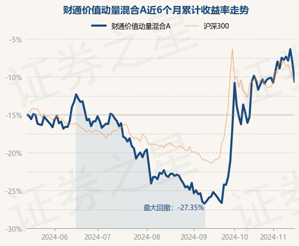 证券之星消息,11月15日,财通价值动量混合A最新单位净值为4.201元,累计净值为4.672元,较前一交易日下跌4.44%。历史数据显示该基金近1个月上涨8.22%,近3个月上涨30.14%,近6个月上涨8.78%,近1年上涨26.42%。该基金近6个月的累计收益率走势如下图: