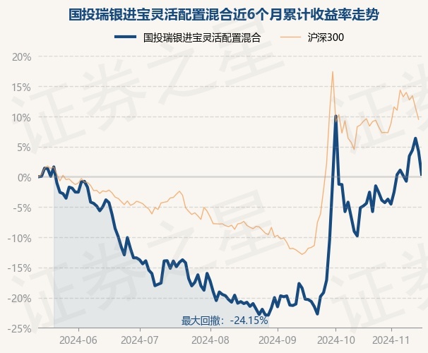 证券之星消息,11月15日,国投瑞银进宝灵活配置混合最新单位净值为2.0613元,累计净值为2.0863元,较前一交易日下跌3.63%。历史数据显示该基金近1个月上涨7.54%,近3个月上涨26.58%,近6个月上涨0.42%,近1年下跌14.79%。该基金近6个月的累计收益率走势如下图: