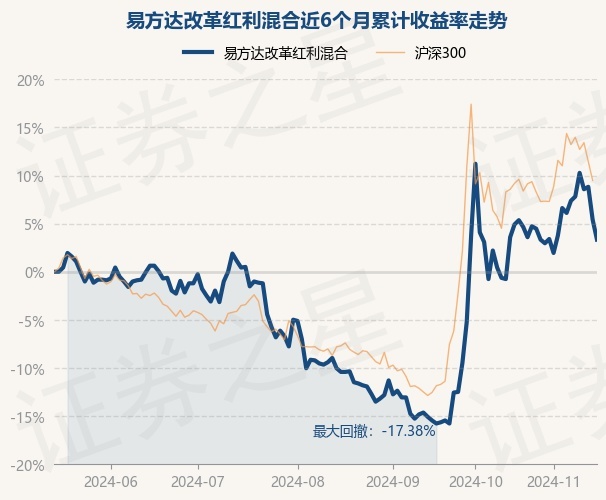 证券之星消息,11月15日,易方达改革红利混合最新单位净值为1.639元,累计净值为1.639元,较前一交易日下跌1.97%。历史数据显示该基金近1个月上涨2.89%,近3个月上涨15.34%,近6个月上涨3.34%,近1年上涨2.44%。该基金近6个月的累计收益率走势如下图: