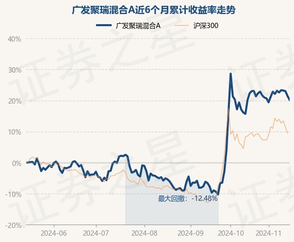证券之星消息,11月15日,广发聚瑞混合A最新单位净值为3.6945元,累计净值为3.6945元,较前一交易日下跌1.04%。历史数据显示该基金近1个月上涨2.62%,近3个月上涨26.59%,近6个月上涨20.19%,近1年上涨1.82%。该基金近6个月的累计收益率走势如下图:
