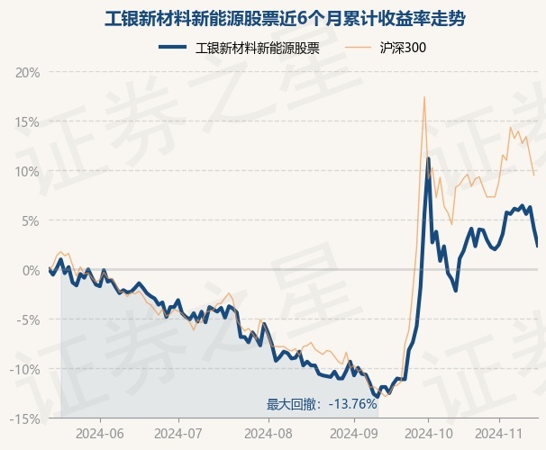 证券之星消息,11月15日,工银新材料新能源股票最新单位净值为1.319元,累计净值为1.319元,较前一交易日下跌1.64%。历史数据显示该基金近1个月上涨2.81%,近3个月上涨12.93%,近6个月上涨2.41%,近1年上涨6.11%。该基金近6个月的累计收益率走势如下图: