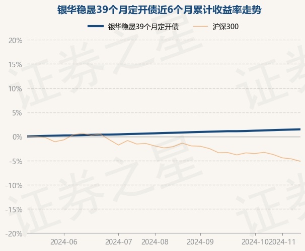 证券之星消息,11月15日,银华稳晟39个月定开债最新单位净值为1.0114元,累计净值为1.1504元,较前一交易日上涨0.05%。历史数据显示该基金近1个月上涨0.28%,近3个月上涨0.76%,近6个月上涨1.47%,近1年上涨2.84%。该基金近6个月的累计收益率走势如下图: