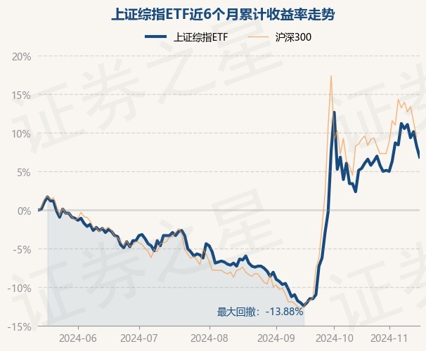 证券之星消息,11月15日,上证综指ETF最新单位净值为0.81元,累计净值为1.685元,较前一交易日下跌1.34%。历史数据显示该基金近1个月上涨3.32%,近3个月上涨14.08%,近6个月上涨6.86%,近1年上涨7.69%。该基金近6个月的累计收益率走势如下图: