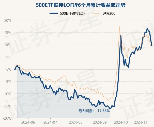 证券之星消息,11月15日,500ETF联接LOF最新单位净值为1.6554元,累计净值为1.7554元,较前一交易日下跌2.4%。历史数据显示该基金近1个月上涨7.85%,近3个月上涨24.26%,近6个月上涨9.57%,近1年上涨5.56%。该基金近6个月的累计收益率走势如下图:
