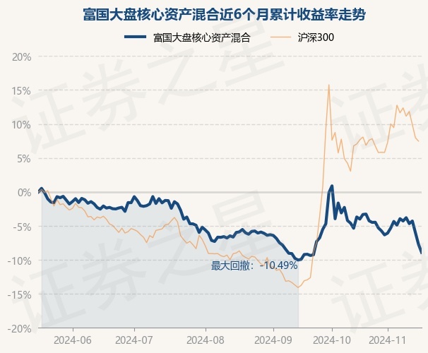 证券之星消息,11月18日,富国大盘核心资产混合最新单位净值为0.7504元,累计净值为0.7504元,较前一交易日下跌1.28%。历史数据显示该基金近1个月下跌5.42%,近3个月下跌3.21%,近6个月下跌8.91%,近1年下跌3.56%。该基金近6个月的累计收益率走势如下图: