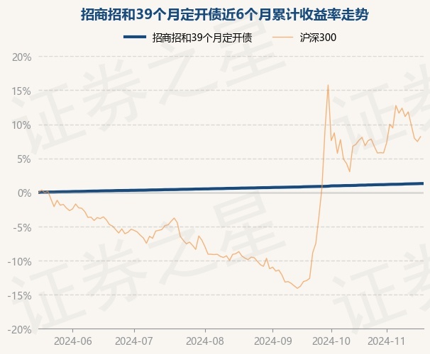 证券之星消息,11月18日,招商招和39个月定开债最新单位净值为1.0059元,累计净值为1.1381元,较前一交易日上涨0.02%。历史数据显示该基金近1个月上涨0.27%,近3个月上涨0.68%,近6个月上涨1.3%,近1年上涨2.84%。该基金近6个月的累计收益率走势如下图: