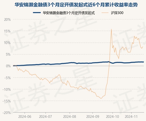 证券之星消息,11月18日,华安锦灏金融债3个月定开债发起式最新单位净值为1.0364元,累计净值为1.1104元,较前一交易日上涨0.0%。历史数据显示该基金近1个月上涨0.18%,近3个月上涨0.53%,近6个月上涨1.61%,近1年上涨4.05%。该基金近6个月的累计收益率走势如下图: