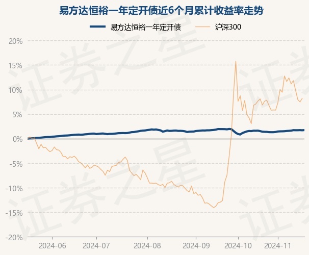 证券之星消息,11月18日,易方达恒裕一年定开债最新单位净值为1.0657元,累计净值为1.2047元,较前一交易日下跌0.03%。历史数据显示该基金近1个月上涨0.09%,近3个月上涨0.11%,近6个月上涨1.7%,近1年上涨6.25%。该基金近6个月的累计收益率走势如下图: