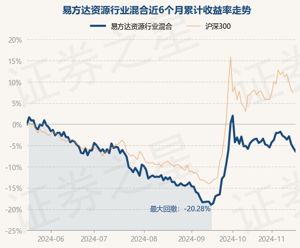 证券之星消息,11月18日,易方达资源行业混合最新单位净值为1.317元,累计净值为1.317元,较前一交易日下跌0.83%。历史数据显示该基金近1个月下跌2.01%,近3个月上涨7.6%,近6个月下跌6.4%,近1年上涨13.73%。该基金近6个月的累计收益率走势如下图:
