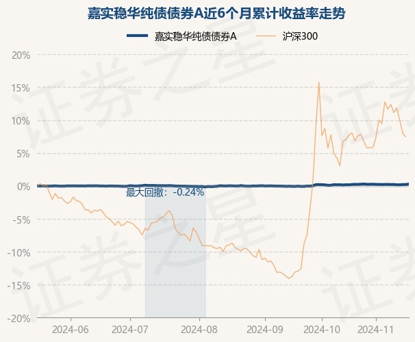 证券之星消息,11月18日,嘉实稳华纯债债券A最新单位净值为1.033元,累计净值为1.2787元,较前一交易日上涨0.07%。历史数据显示该基金近1个月上涨0.1%,近3个月上涨0.27%,近6个月上涨0.27%,近1年上涨1.24%。该基金近6个月的累计收益率走势如下图:
