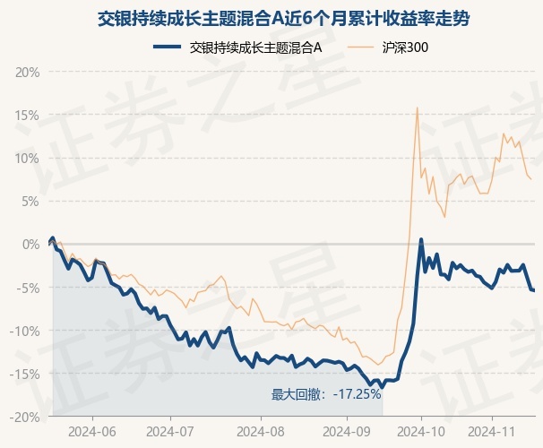 证券之星消息,11月18日,交银持续成长主题混合A最新单位净值为1.3387元,累计净值为1.4787元,较前一交易日下跌0.12%。历史数据显示该基金近1个月下跌3.29%,近3个月上涨9.74%,近6个月下跌5.45%,近1年下跌16.29%。该基金近6个月的累计收益率走势如下图: