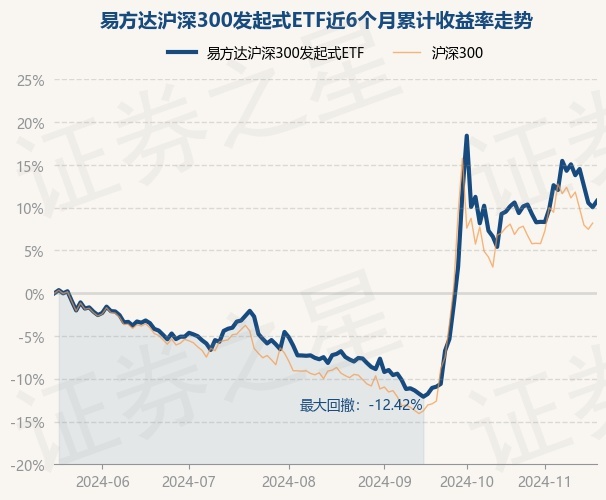 证券之星消息,11月18日,易方达沪深300发起式ETF最新单位净值为3.8752元,累计净值为1.9769元,较前一交易日下跌0.46%。历史数据显示该基金近1个月上涨0.71%,近3个月上涨18.46%,近6个月上涨10.05%,近1年上涨13.76%。该基金近6个月的累计收益率走势如下图: