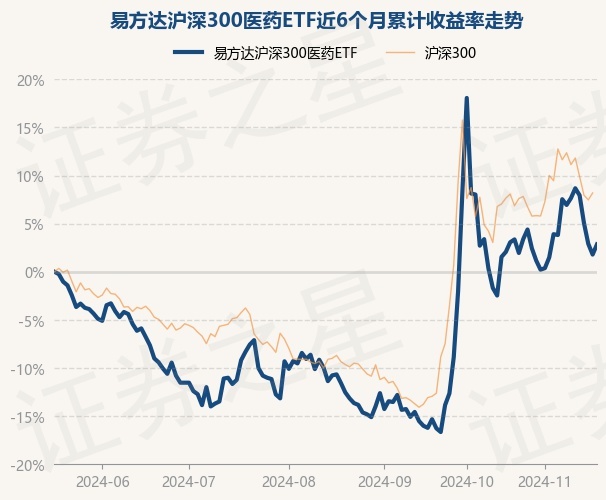 证券之星消息,11月18日,易方达沪深300医药ETF最新单位净值为0.3754元,累计净值为1.5016元,较前一交易日下跌1.08%。历史数据显示该基金近1个月上涨0.24%,近3个月上涨13.93%,近6个月上涨1.79%,近1年下跌13.6%。该基金近6个月的累计收益率走势如下图: