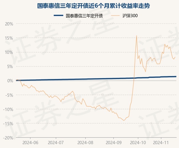证券之星消息,11月18日,国泰惠信三年定开债最新单位净值为1.0078元,累计净值为1.1367元,较前一交易日上涨0.02%。历史数据显示该基金近1个月上涨0.37%,近3个月上涨0.77%,近6个月上涨1.35%,近1年上涨2.43%。该基金近6个月的累计收益率走势如下图: