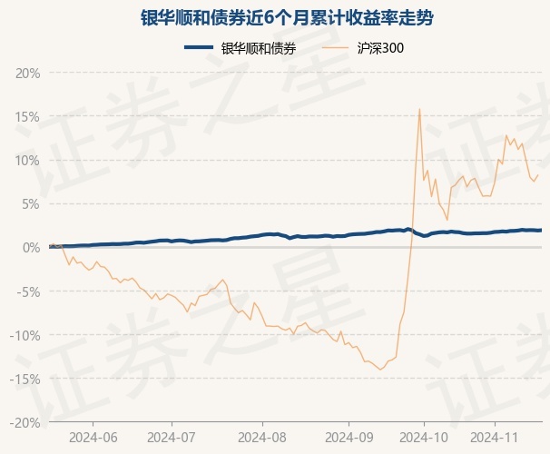 证券之星消息,11月19日,银华顺和债券最新单位净值为1.0386元,累计净值为1.0466元,较前一交易日上涨0.04%。历史数据显示该基金近1个月上涨0.21%,近3个月上涨0.71%,近6个月上涨1.9%,近1年上涨4.34%。该基金近6个月的累计收益率走势如下图: