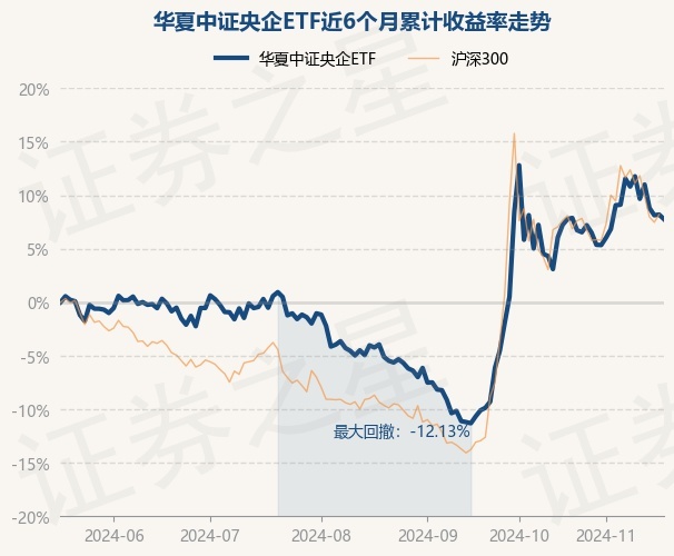 证券之星消息,11月19日,华夏中证央企ETF最新单位净值为1.3742元,累计净值为1.3742元,较前一交易日下跌0.39%。历史数据显示该基金近1个月上涨1.62%,近3个月上涨12.19%,近6个月上涨7.76%,近1年上涨14.35%。该基金近6个月的累计收益率走势如下图: