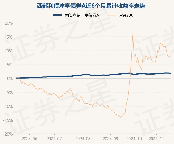 证券之星消息,11月19日,西部利得沣享债券A最新单位净值为1.0467元,累计净值为1.0767元,较前一交易日上涨0.0%。历史数据显示该基金近1个月上涨0.22%,近3个月上涨0.78%,近6个月上涨1.87%,近1年上涨4.82%。该基金近6个月的累计收益率走势如下图: