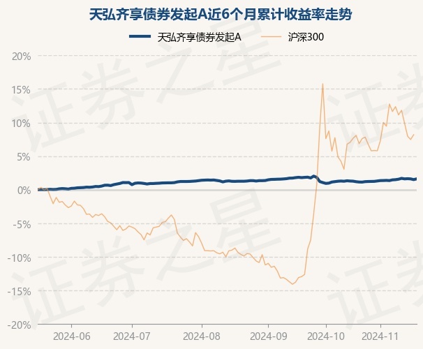 证券之星消息,11月19日,天弘齐享债券发起A最新单位净值为1.0406元,累计净值为1.1242元,较前一交易日上涨0.11%。历史数据显示该基金近1个月上涨0.32%,近3个月上涨0.35%,近6个月上涨1.61%,近1年上涨4.5%。该基金近6个月的累计收益率走势如下图: