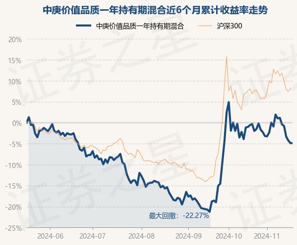 证券之星消息,11月19日,中庚价值品质一年持有期混合最新单位净值为1.485元,累计净值为1.485元,较前一交易日上涨0.0%。历史数据显示该基金近1个月下跌2.69%,近3个月上涨13.7%,近6个月下跌3.8%,近1年上涨0.0%。该基金近6个月的累计收益率走势如下图:
