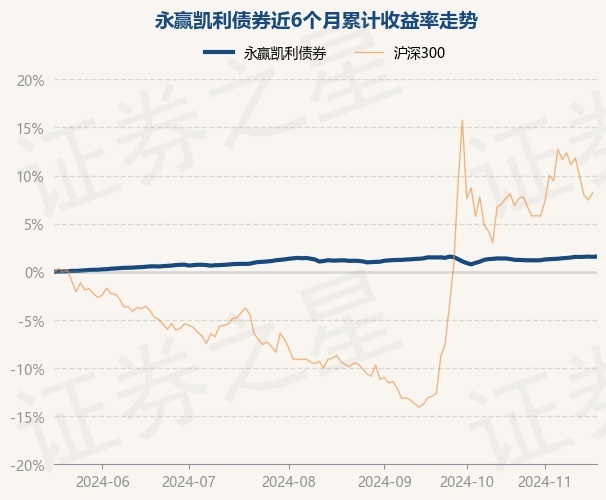 证券之星消息,11月19日,永赢凯利债券最新单位净值为1.0895元,累计净值为1.2076元,较前一交易日上涨0.03%。历史数据显示该基金近1个月上涨0.2%,近3个月上涨0.39%,近6个月上涨1.59%,近1年上涨4.31%。该基金近6个月的累计收益率走势如下图: