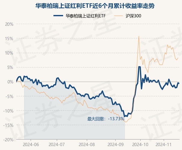 证券之星消息,11月19日,华泰柏瑞上证红利ETF最新单位净值为3.2116元,累计净值为2.9505元,较前一交易日下跌0.18%。历史数据显示该基金近1个月下跌1.07%,近3个月上涨2.72%,近6个月下跌0.65%,近1年上涨13.26%。该基金近6个月的累计收益率走势如下图: