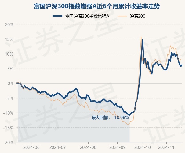 证券之星消息,11月19日,富国沪深300指数增强A最新单位净值为1.576元,累计净值为2.162元,较前一交易日上涨0.51%。历史数据显示该基金近1个月上涨0.13%,近3个月上涨12.25%,近6个月上涨6.27%,近1年上涨10.6%。该基金近6个月的累计收益率走势如下图: