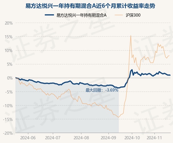 证券之星消息,11月20日,易方达悦兴一年持有期混合A最新单位净值为1.0204元,累计净值为1.0204元,较前一交易日下跌0.1%。历史数据显示该基金近1个月下跌0.63%,近3个月上涨3.74%,近6个月上涨0.9%,近1年上涨3.05%。该基金近6个月的累计收益率走势如下图: