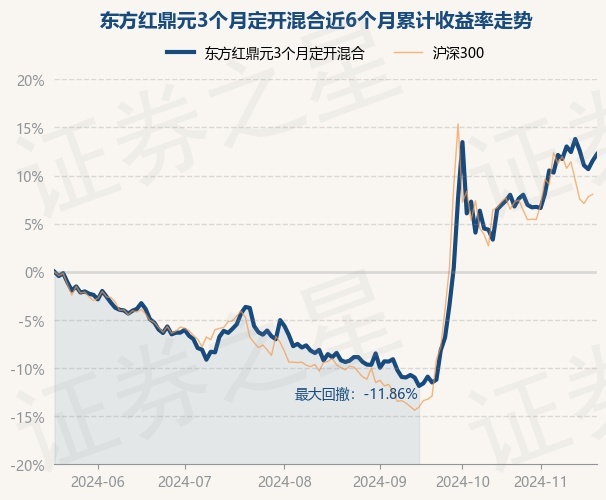 证券之星消息,11月20日,东方红鼎元3个月定开混合最新单位净值为0.9671元,累计净值为0.9671元,较前一交易日上涨0.61%。历史数据显示该基金近1个月上涨5.39%,近3个月上涨23.58%,近6个月上涨12.22%,近1年上涨12.43%。该基金近6个月的累计收益率走势如下图: