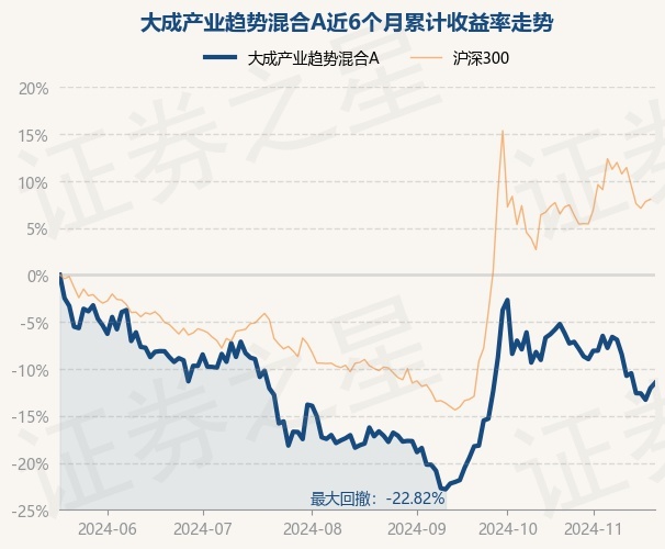 证券之星消息,11月20日,大成产业趋势混合A最新单位净值为1.4041元,累计净值为1.4041元,较前一交易日上涨0.65%。历史数据显示该基金近1个月下跌5.16%,近3个月上涨6.86%,近6个月下跌11.5%,近1年上涨7.99%。该基金近6个月的累计收益率走势如下图: