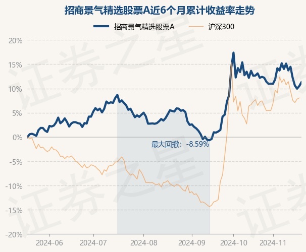证券之星消息,11月20日,招商景气精选股票A最新单位净值为0.9774元,累计净值为0.9774元,较前一交易日上涨0.72%。历史数据显示该基金近1个月下跌2.07%,近3个月上涨5.62%,近6个月上涨11.28%,近1年上涨27.15%。该基金近6个月的累计收益率走势如下图: