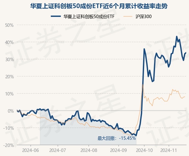 证券之星消息,11月20日,华夏上证科创板50成份ETF最新单位净值为1.0549元,累计净值为0.7326元,较前一交易日上涨0.46%。历史数据显示该基金近1个月上涨2.47%,近3个月上涨44.92%,近6个月上涨33.72%,近1年上涨12.88%。该基金近6个月的累计收益率走势如下图: