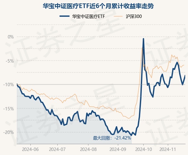 证券之星消息,11月20日,华宝中证医疗ETF最新单位净值为0.354元,累计净值为1.062元,较前一交易日上涨1.96%。历史数据显示该基金近1个月上涨4.49%,近3个月上涨24.96%,近6个月上涨3.6%,近1年下跌15.91%。该基金近6个月的累计收益率走势如下图: