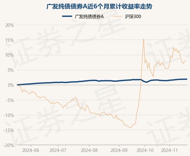 证券之星消息,11月20日,广发纯债债券A最新单位净值为1.249元,累计净值为1.6867元,较前一交易日上涨0.01%。历史数据显示该基金近1个月上涨1.24%,近3个月上涨0.49%,近6个月上涨1.87%,近1年上涨5.0%。该基金近6个月的累计收益率走势如下图: