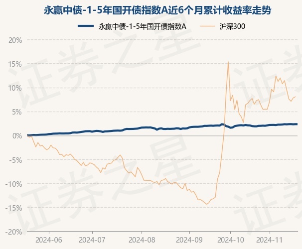 证券之星消息,11月20日,永赢中债-1-5年国开债指数A最新单位净值为1.1202元,累计净值为1.1602元,较前一交易日上涨0.0%。历史数据显示该基金近1个月上涨0.24%,近3个月上涨0.98%,近6个月上涨2.33%,近1年上涨5.37%。该基金近6个月的累计收益率走势如下图: