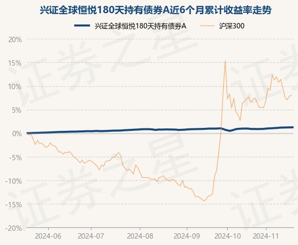 证券之星消息,11月20日,兴证全球恒悦180天持有债券A最新单位净值为1.1219元,累计净值为1.1219元,较前一交易日上涨0.01%。历史数据显示该基金近1个月上涨0.27%,近3个月上涨0.45%,近6个月上涨1.25%,近1年上涨4.0%。该基金近6个月的累计收益率走势如下图: