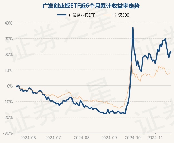 证券之星消息,11月20日,广发创业板ETF最新单位净值为1.3593元,累计净值为1.3593元,较前一交易日上涨0.5%。历史数据显示该基金近1个月上涨3.35%,近3个月上涨44.81%,近6个月上涨21.82%,近1年上涨15.16%。该基金近6个月的累计收益率走势如下图: