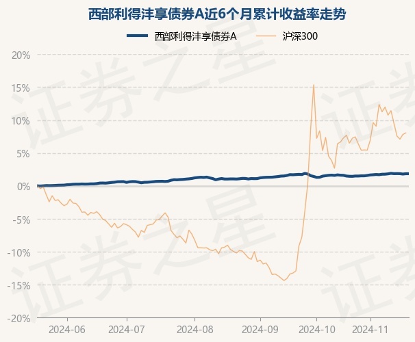 证券之星消息,11月20日,西部利得沣享债券A最新单位净值为1.0465元,累计净值为1.0765元,较前一交易日上涨0.0%。历史数据显示该基金近1个月上涨0.2%,近3个月上涨0.76%,近6个月上涨1.83%,近1年上涨4.8%。该基金近6个月的累计收益率走势如下图:
