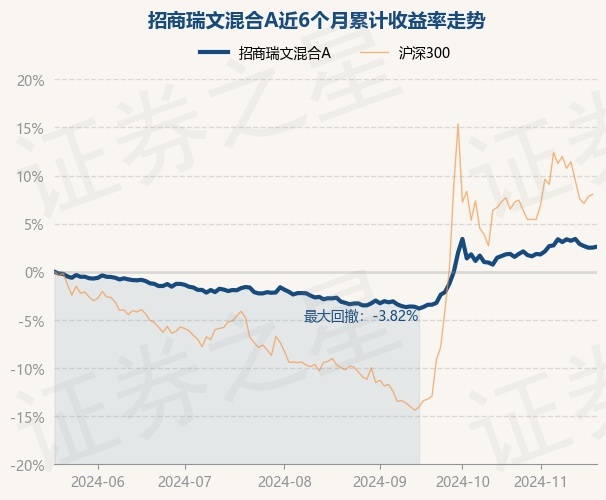 证券之星消息,11月20日,招商瑞文混合A最新单位净值为1.2391元,累计净值为1.2391元,较前一交易日上涨0.1%。历史数据显示该基金近1个月上涨1.13%,近3个月上涨5.9%,近6个月上涨2.61%,近1年上涨5.91%。该基金近6个月的累计收益率走势如下图: